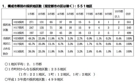 全551地区中316地区、全体の約6割が教科書の採択地区を複数の市町村で構成し、政令指定都市では全19市中16都市が1地区で構成していた。市町村教育委員会に対して、定期的に採択地区の構成の在り方を確認している都道府県は18都道府県だった。