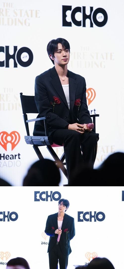 この場でJINは、「音楽が僕たちの心を照らすように、今、このビルがニューヨークの街を明るく照らしていることを実感しています」とコメント。それぞれの色について、「青は希望、ピンクは愛、黄色は喜び、白は新たな始まりを象徴しています」と説明し、「この『Echo』というアルバムが、夢やメッセージを共鳴させるものになってほしい」と思いを語った。