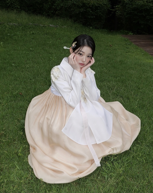 公開された写真の中でチャン・ウォニョンは白いチョゴリとアプリコット色のスカートで構成された韓服を美しく着こなし、清楚な魅力を放っている。髪には繊細な簪やヘアピンを添え、優雅さを完成させた。