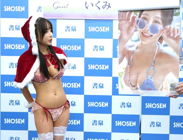 いくみは赤×白色のランジェリーにサンタクロースの帽子を被った衣装で登場すると「もうちょっとでクリスマスですし、セクシーさは大事かなと思ったので“セクシーなサンタ”にしてみました」とにっこり。