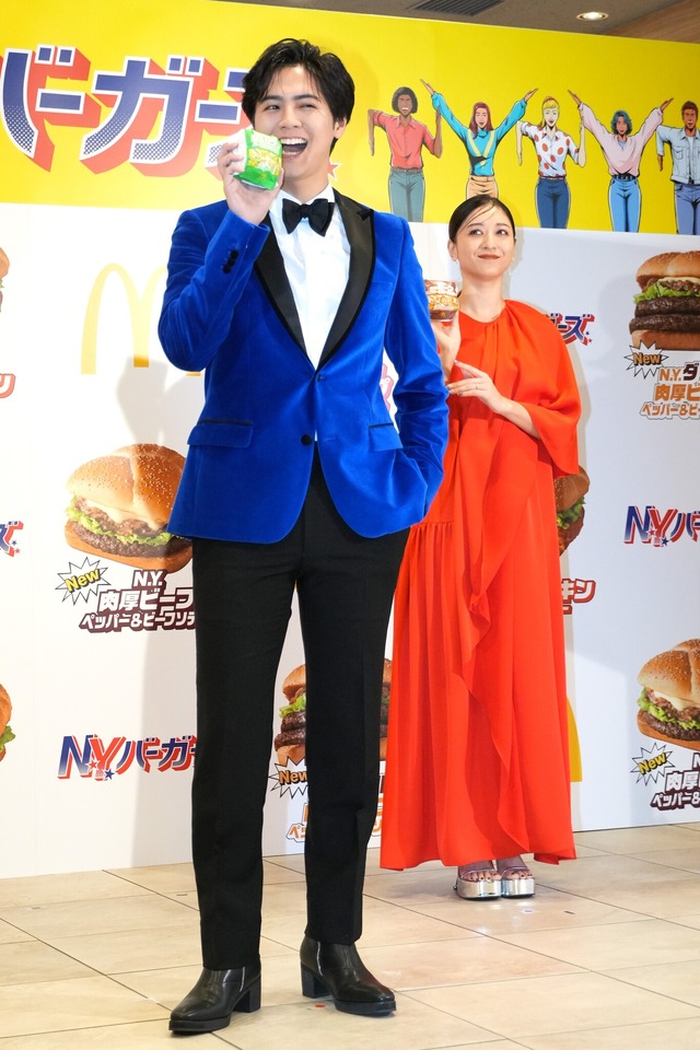 モデルでタレントのみちょぱ、GENERATIONSの数原龍友と片寄涼太が29日、都内にて行われたマクドナルド「行った気になる!N.Y.バーガーズ」新商品発表イベントに出席した。