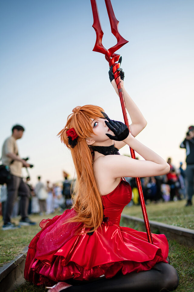同イベントでは、コスプレイヤーの「阿璇」さんが「ヱヴァンゲリヲン新劇場版」の「式波・アスカ・ラングレー」を披露。赤いドレスがフィットした長身の美スタイルで、まるで絵画のように幻想的な佇まいを見せていました。