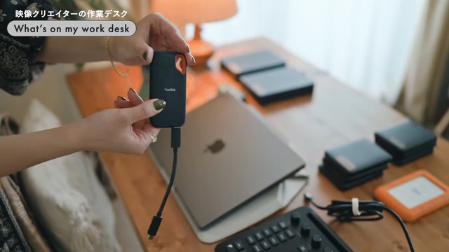 まず、撮影したデータは読み込み速度が速く衝撃にも強いSanDisk Extreme Portable SSDに入れる。編集作業はこの中にあるデータを使って行い、パソコン本体の容量がいっぱいにならないようにしているのが特徴だ。