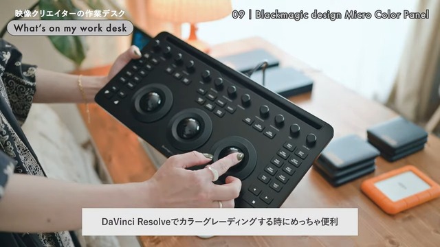 JEMMAさんは映像の品質、とくに「色」にこだわっている。動画内で紹介されたのが、Blackmagic DesignのDaVinci Resolve Micro Color Panelだ。