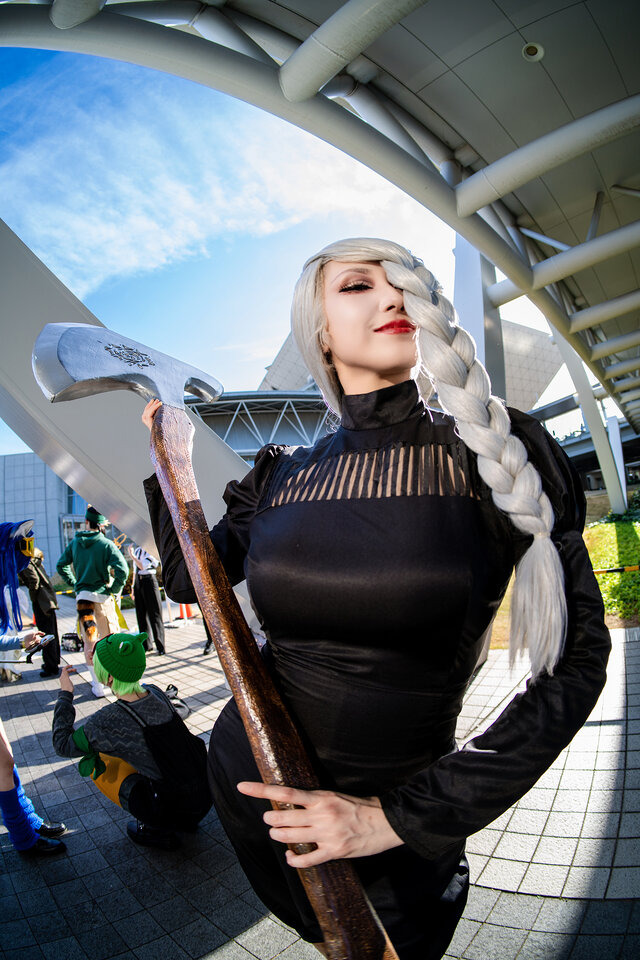 大阪から遠征しての参加だった「mirio」さんは「呪術廻戦」の「冥冥」を披露。46歳とは思えない美貌とスタイルの良さで、これまで「進撃の巨人」の「始祖ユミル」、「ベルサイユのばら」の「マリー・アントワネット」などに代表されるように高いコスプレクオリティーが注目を集めています。
