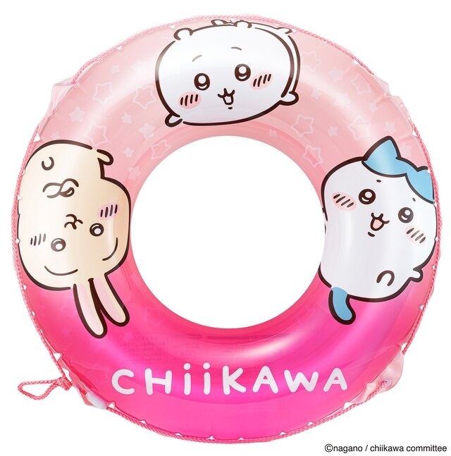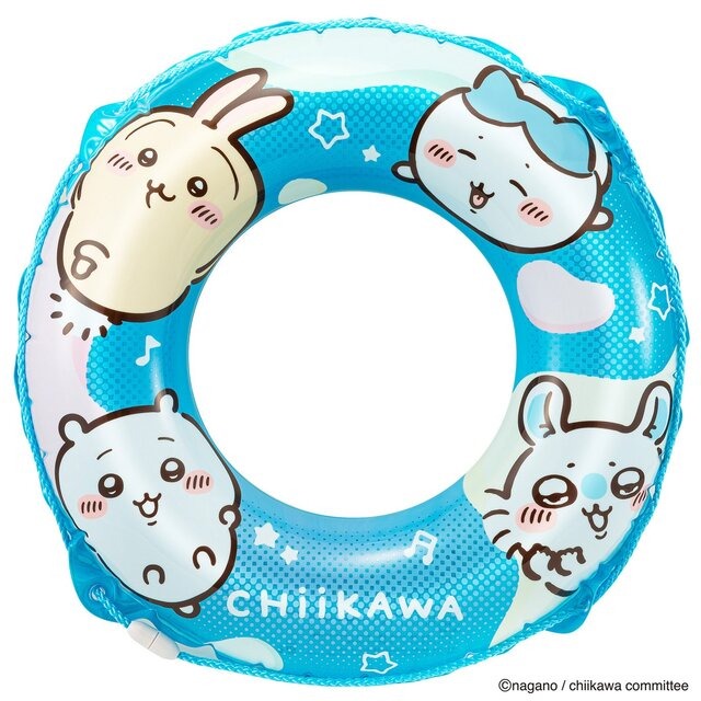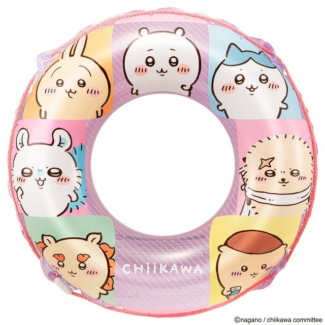 今回登場する「ちいかわ」新商品は、夏のレジャーに向けたアイテムを中心に展開。60/70/90cmのうきわや、 さすまたを持ったちいかわたちデザインのビーチボール、晴雨兼用折傘が用意されています。