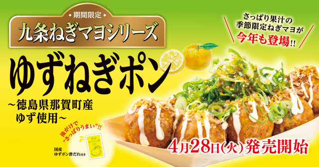 築地銀だこは、九条ねぎマヨシリーズ『ゆずねぎポン』を28日より期間限定で発売する。