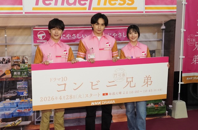 ドラマ10「コンビニ兄弟 テンダネス門司港こがね村店」(4月28日スタート/総合:毎週火曜 夜10:00~10:45)の試写会が21日、NHKにて開催され、出演の中島健人、田中麗奈、鈴木福が報道陣の取材に応じた。