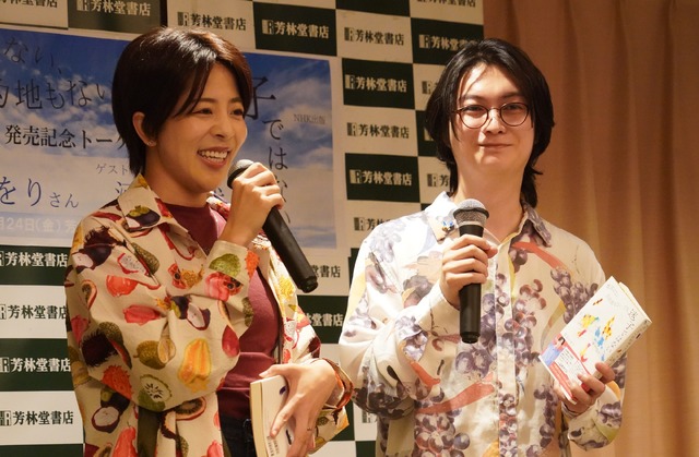 文化昆虫学者・作家・タレントの篠原かをり、夫でQuizKnockの河村拓哉が24日、都内で、篠原の初エッセイ集『地図はない、目的地もない、でも迷子ではない』(NHK出版)の発売記念トーク&サイン会を開催。イベントに先立ち、初の夫婦揃っての囲み取材に応じた。
