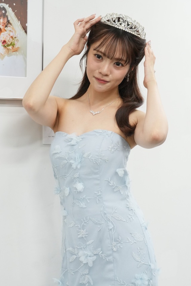 この日、28歳の誕生日を迎えた宮田は、水色のドレスにティアラを付けた姿で登場。衣装について「めちゃめちゃ可愛いですよね。28歳ってお姉さんなので、ちょっとお姉さんな感じで(シルエットが)いいなと思いました。誕生日なのでティアラを付けて、ネイルもキラキラにしました」と指輪やティアラを紹介すると「結婚報告みたいですね」と笑顔を弾けさせた。