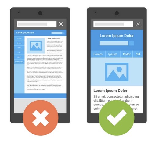 モバイル フレンドリーでないページ(左)とモバイル フレンドリーなページ(右)の表示イメージ例