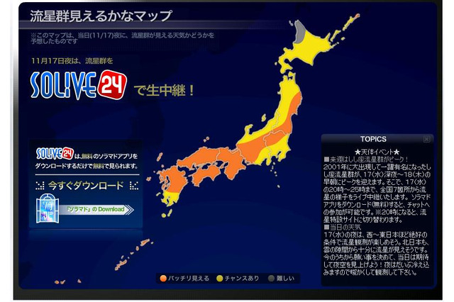 もう始まったしし座流星群、見頃は17日夜……天気予測やライブ中継も