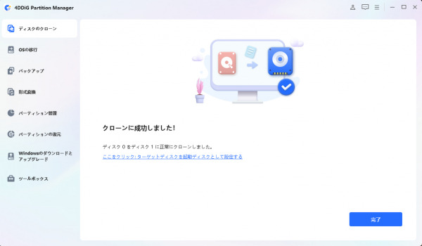 多機能な管理ツールが不要で、「クローン機能だけを使いたい」という人には、4DDiG Partition Managerに次ぐ実用的な選択肢と言えるでしょう。