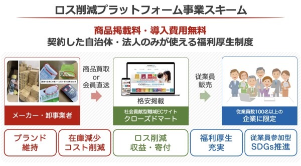 この廃棄課題を解決するため、社会貢献型職域販売サイト「クローズドマート」を運営する