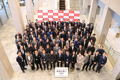 2月17日に兵庫県淡路市にて表彰式を兼ねた『感謝の集い2025』を開催し、市原産業株式会社様をはじめ、全国の有力店25社に対し、代表取締役 社長執行役員 竹内宏より、表彰状を授与させていただきました。
