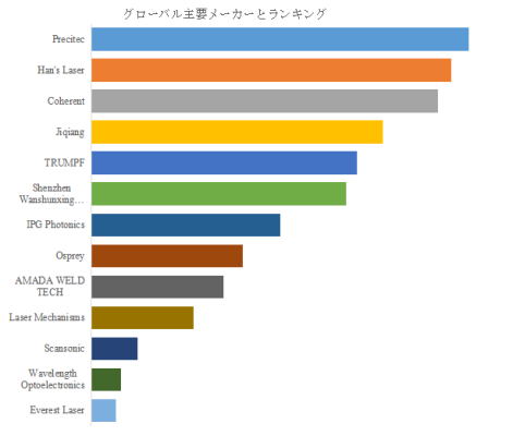 グローバル大手企業であるPrecitec、Coherent、TRUMPFなどは、強力な研究開発能力、豊富な技術蓄積、グローバルな販売・サービスネットワークを強みとし、高品質・高機能な製品で中高級市場を主に占めている。一方、Han'sLaser、Jiqiangなどの中国企業は、価格競争力と国内市場の巨大な需要を背景に、急速にシェアを拡大しており、中低級市場だけでなく、中高級市場への進出も進めている。企業間の競争は主に技術開発、製品品質、価格戦略、サービスの迅速性に集中しており、今後も合併買収や技術提携が市場構造の変動に影響を与える可能性がある。