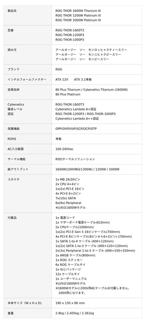 ASUS JAPAN株式会社は、マグネット式OLEDディスプレイ搭載の電源ユニット、80 Plus Titanium・Lambda A+認証1600Wモデル「ROG-THOR-1600T3」、80 Plus Platinum・Lambda A++認証1200Wモデル「ROG-THOR-1200P3」および1000Wモデル「ROG-THOR-1000P3」を発表しました。2025年6月27日(金)より販売開始します。