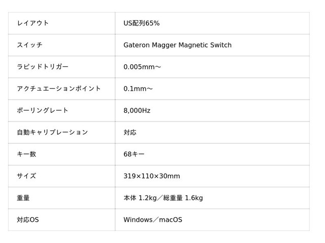 LUMINKEYとGateronが共同開発した「Gateron Magger Magnetic Switch」を搭載しています。