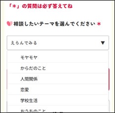 相談テーマの選択画面(子供用) ▶