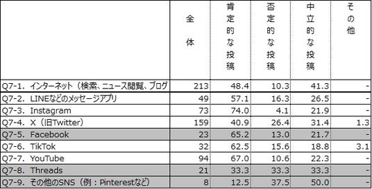 インターネットでの否定的な投稿は10.3%、Instagramでは4.1%であるのに対し、Xは26.4%という結果になった。