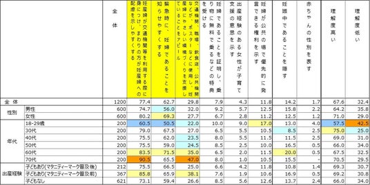 一方で、30代の「理解度高い」は75.0%と最も高く、自身の出産経験がある人が多いためと考えられる。