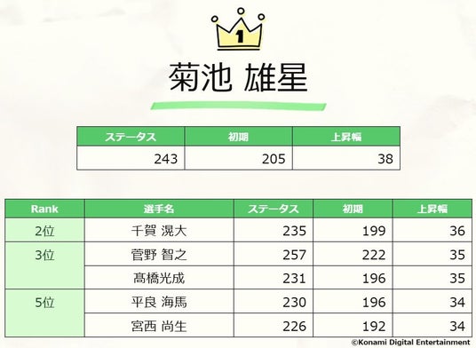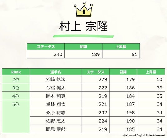 『プロスピA』の統計データを初公開!最も能力値が上昇した野手は村上宗隆選手、投手は菊池雄星投手