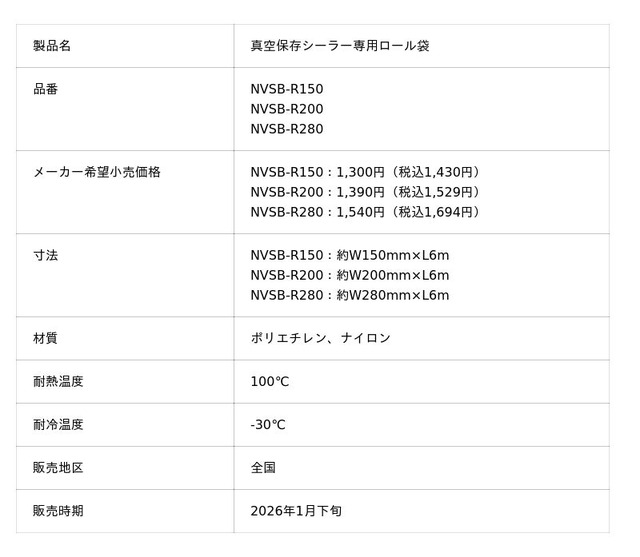 - 酸化や湿気を防ぎ、食品の鮮度・風味をキープ- 衣類や荷物の圧縮・梱包にも使える