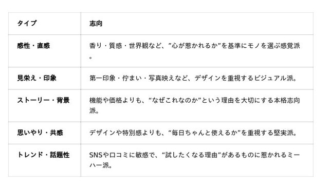 普段の行動・リアクション・こだわりポイントから 「6つのギフト志向タイプ」に分類し、 彼が喜ぶ”身だしなみギフト”の方向性をわかりやすく可視化する診断ツール。