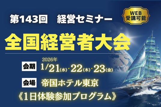●第143回 経営セミナー「全国経営者大会」●日程:2026年1月21日(水)~23日(金)のうち、お好きな1日