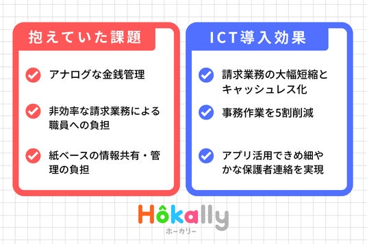 本事例では、3つの施設単位で児童数約120名を抱える大規模施設において、アナログな事務・集金作業をデジタル化することで事務作業を5割削減し、職員が「保育に専念できるゆとり」を確保するまでの流れを詳細に紹介しています。