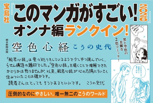 漫画家こうの史代さんによる最新の長編コミック『空色心経』は、2025年4月の刊行より大好評をいただきました。今年刊行されたすべてのマンガからTOP20を選出する宝島社「このマンガがすごい!2026」オンナ編にて第18位にランクインしました。こうのさんから本作についての直筆コメントが届きました!