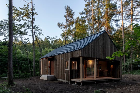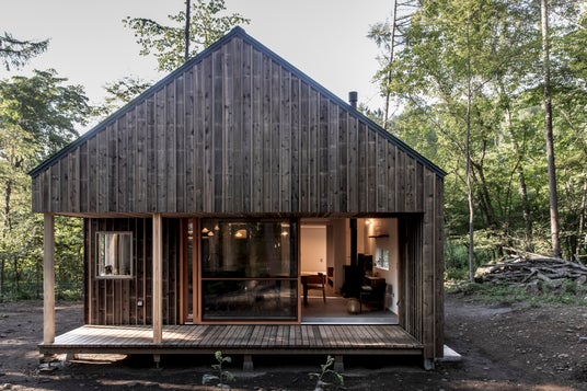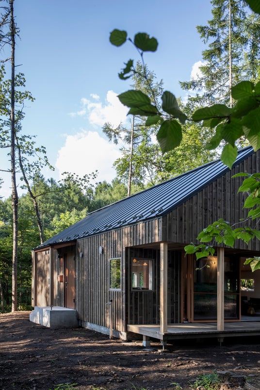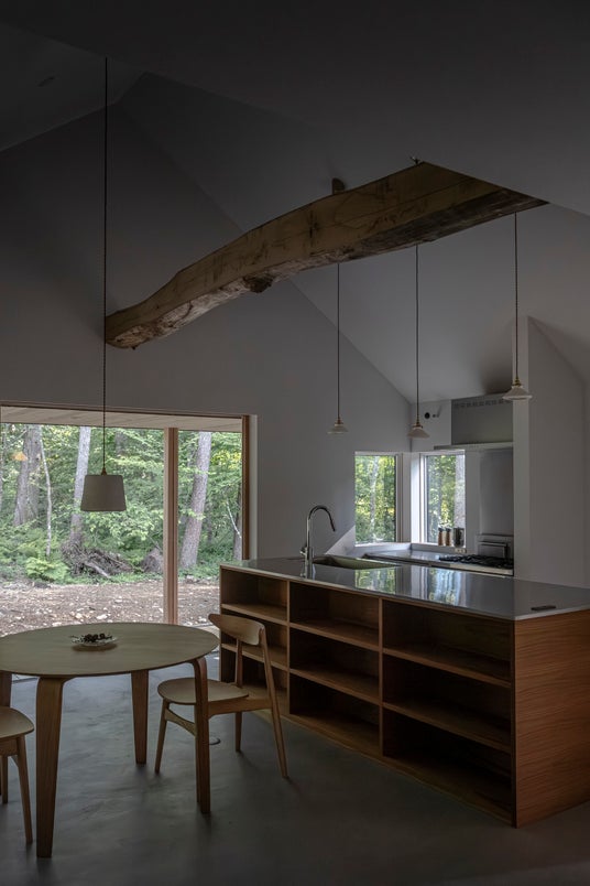 山林に抱かれるように建つ小さな平屋は、外観から室内細部まで丁寧に撮影され、写真とともに世界観をご覧いただけます。