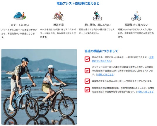 地球温暖化対策などで新たな電動モビリティが注目されるなか、(株)公益創造センター(岡山県岡山市)は、北米やヨーロッパを中心に海外で販売されているe-bike(電動アシスト自転車)を日本の法律の規定に合わせてカスタマイズし、販売するECサイト「E-BIKE セレクション」をオープンしました。