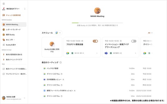 生成AIの法人活用を支援する株式会社ギブリー(本社:東京都渋谷区、代表取締役社長:井手高志、以下当社)は、2026年1月5日に当社が提供する生成AI・AIエージェント活用プラットフォーム「MANA Studio(マナ スタジオ)」にて、リアルタイム文字起こしとカレンダー連携で会議の生産性を高める「MANA Meeting(マナ ミーティング)」の提供を開始したことをお知らせいたします。