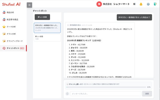 TOPPANグループの株式会社ONE COMPATH(ワン・コンパス)は、日本最大級の電子チラシサービス「Shufoo!(シュフー)」の日本全国365日のチラシデータと全国1,100万人のユーザーデータを活用した次世代販促支援AIツール「Shufoo!AI(シュフーエーアイ)」の本格提供を2026年1月7日より開始いたしました。2025年10月に提供を開始したβ版から大幅にアップデートし、AIチャットボット・テーマキーワードによる過去チラシ画像の検索、公開前のチラシ評価など販促を促進する新しい機能を追加しました。