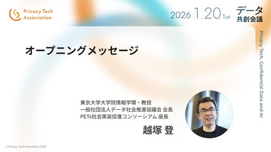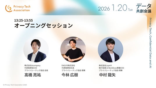 プライバシーテック協会(会長 高橋 亮祐)は2026年1月20日(火)、JPタワー ホール&カンファレンス(東京都千代田区丸の内)にて、カンファレンス「データ共創会議2026」を開催します。本カンファレンスは、「プライバシーテック」「機密データ」「AI」をテーマとして掲げ、AI時代の安全なデータ利活用を多様な立場の人々が一堂に会し、議論する場です。