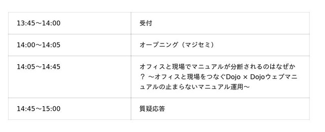- DojoとDojoウェブマニュアルでオフィスと現場を一気通貫にするマニュアル運用設計手法