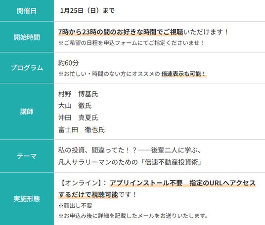 複数の投資家のノウハウをまるっと知ることができる、 ここだけのまたとない機会。