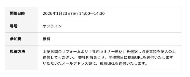- ~11月14日(金) 第1回無料ウェビナー開催~