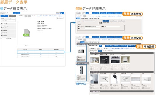 - 集合住宅の共有設備と各戸の専有設備を管理し、共有設備は各戸へ開示設定可能