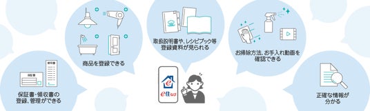 「e住なび」(いーすまいなび)はご自宅にある設備や家電を登録することで「取扱説明書」や購入時期、保障期限などまとめて管理することが出来ます。
