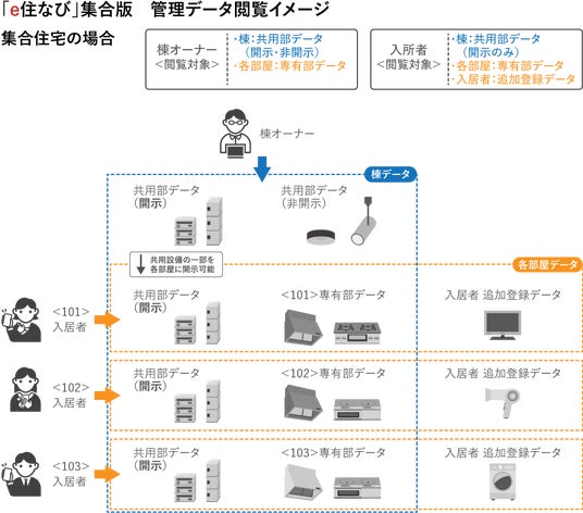 - 集合住宅オーナーは、共有設備および各戸の専有設備を閲覧可能、入居者は各戸の専有設備のみ閲覧可能