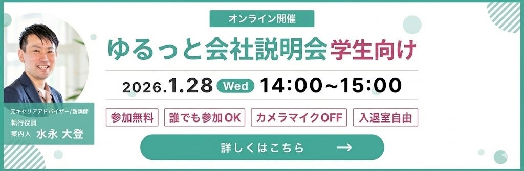 こうした就職活動中のさまざまな気持ちに寄り添うことを目的とした、“ゆるく・気軽に参加できる”会社説明会です。