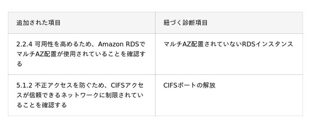 以下に示す通り、新たに二つの項目が追加されています。なお、紐づく診断項目はすでにCloudbaseに存在しており、新たな診断項目の追加はございません。