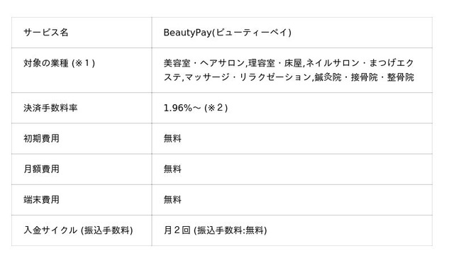 「BeautyPay(ビューティーペイ)」は、サインドグループが持つ美容業界の顧客基盤を通じて創出されるスケールメリットを活用することで、決済手数料が1.96%~と業界最安水準でご利用いただけるキャッシュレス決済サービスです。また、初期費用、端末費用、月額費用、振込手数料をすべて無料で提供し、理美容店舗がキャッシュレス決済サービスを導入する負担を軽減することで、美容業界のキャッシュレス決済普及拡大に取り組んでまいります。BeautyPay(ビューティーペイ)オフィシャルサイト:https://www.beautypay.jp/