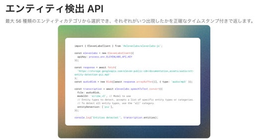 Scribe V2は、90以上の言語に対応。日本語の会議中に突然英語のプレゼンが始まるような、同一音声ファイル内で言語が切り替わるケースでも、事前設定や手動分割なしに自動判定して文字起こしします。