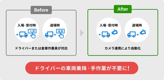 車両の物流拠点への入退場登録が自動化されます。これにより、事務所スタッフの作業負荷が軽減されるとともに、入退場の実態を反映した時間データを安定的に記録・蓄積できます。