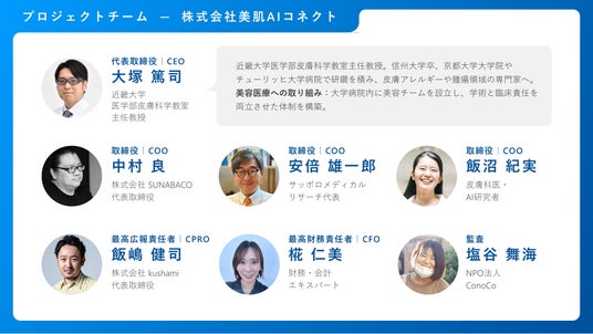 「美肌コネクト」は医療、IT、研究、ファイナンス、広報など多様な専門家が結集したチームで開発を進めています。各メンバーは、それぞれの専門領域とネットワークを活かして、「信頼できる情報で選ぶ美容医療」という新しい標準を社会に根付かせるために尽力してまいります。