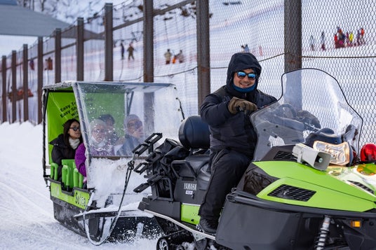 ★スノーモービルそりナイトツアー家族、グループでもわいわい楽しめる6人乗り大型そりに乗ってナイトクルーズに出発!