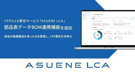 アスエネ株式会社(本社:東京都港区、代表取締役CEO:西和田 浩平、以下「当社」)は、CFP(カーボンフットプリント)およびLCA算定に対応したクラウドサービス「ASUENE LCA」において、製品の部品構成を示すBOM(Bill of Materials)データを階層構造のまま管理・連携できる新機能を追加しました。